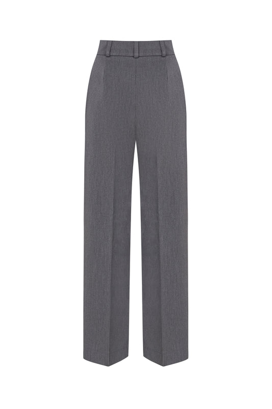Gray Palazzo Pants – Wide-Leg High Rise Suit Trousers for Women