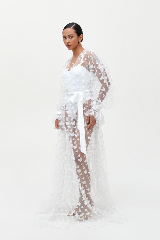 Bridal Robe – White Butterfly Sheer Satin Robe