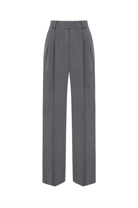 Gray Palazzo Pants – Wide-Leg High Rise Suit Trousers for Women