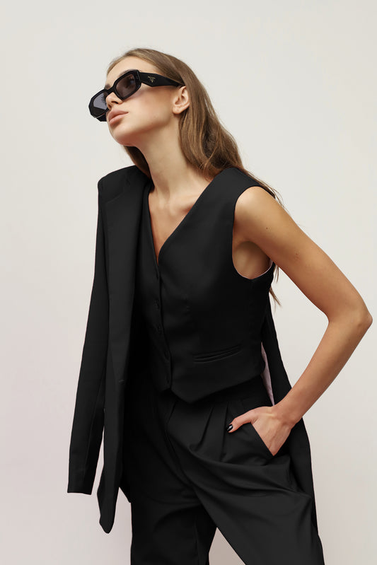 Black Vest – Women’s Tailored Suit Waistcoat with Pockets