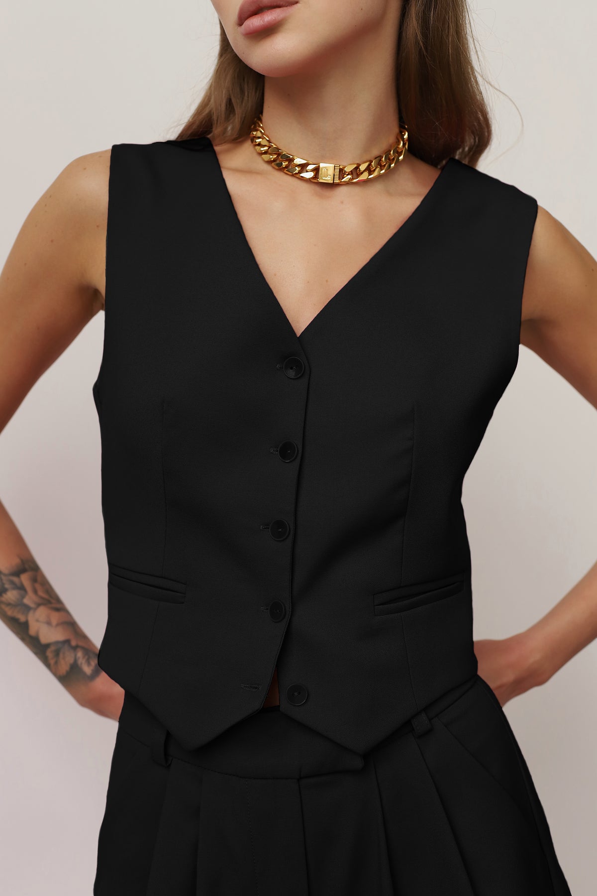 Black Vest – Women’s Tailored Suit Waistcoat with Pockets