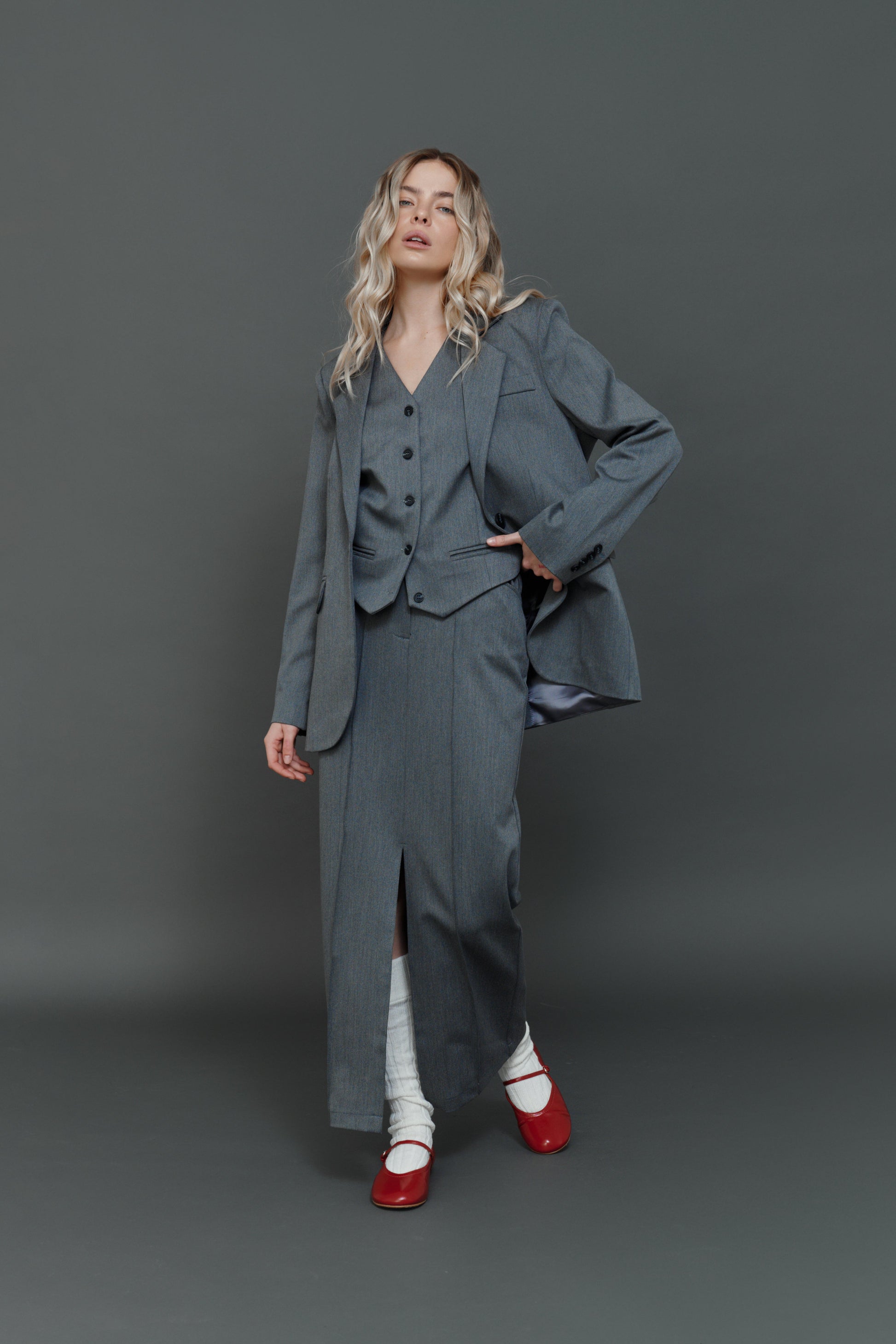 Wear it as a full co-ord with our vest and trousers, or style it solo to elevate your everyday. This is not just outerwear. This is your moment, tailored.