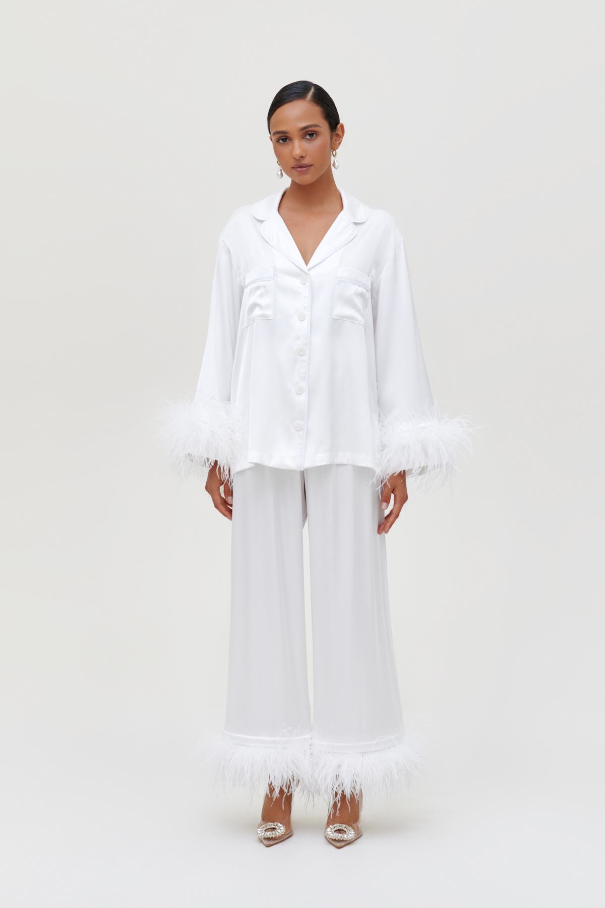 White Satin Pajamas – Luxury Women’s 2-Piece Sleepwear Set