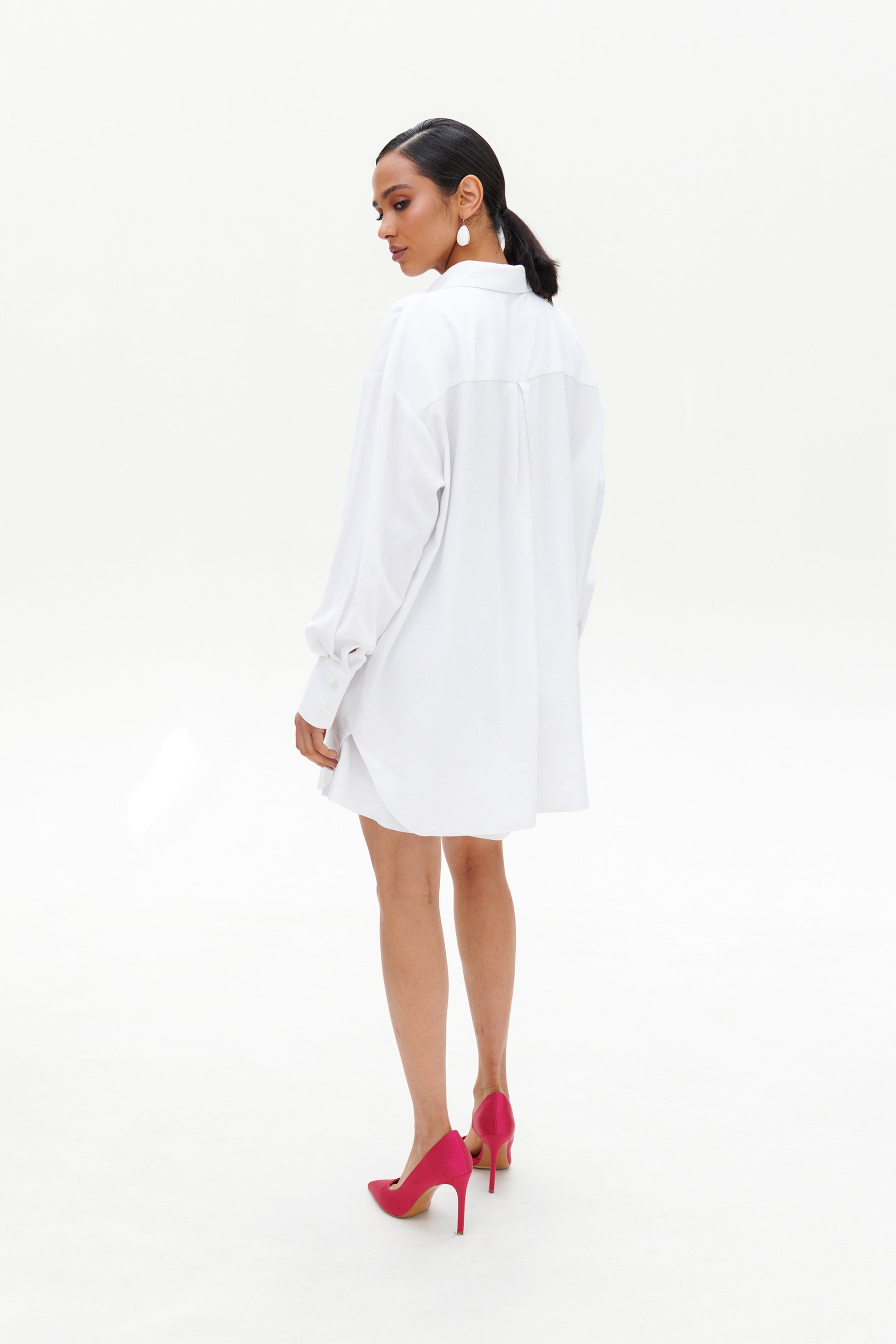 Sometimes, all you need is a shirt that moves with you. This oversized piece is a tribute to ease, freedom, and effortless femininity. Designed for days when you want to look composed but feel completely at ease.