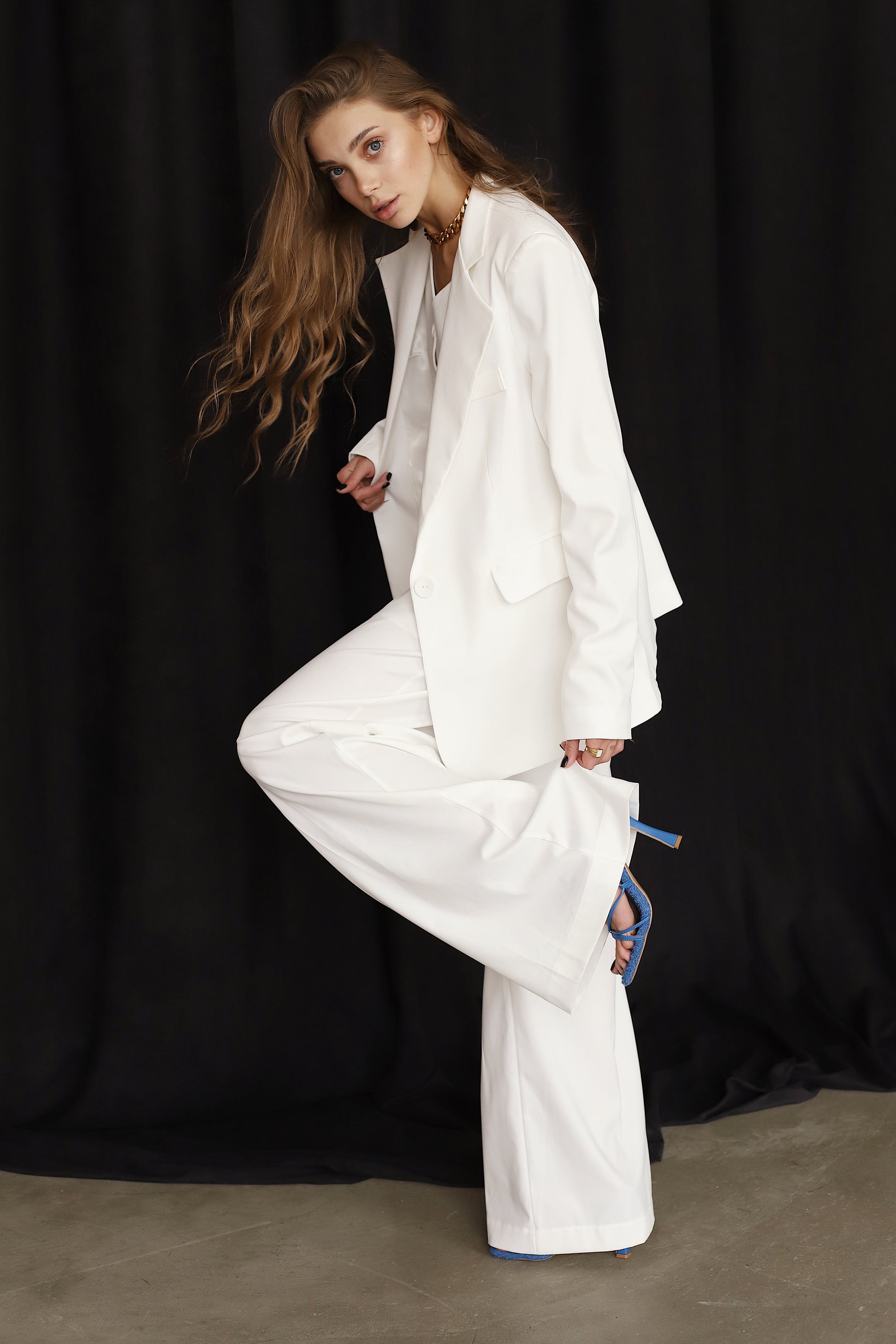 White Pants – High Rise Wide-Leg Tailored Suit Trousers