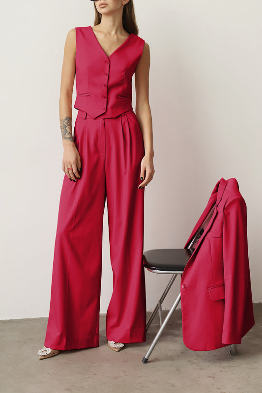 Red Palazzo Pants – Wide Leg High Rise Trousers for Women