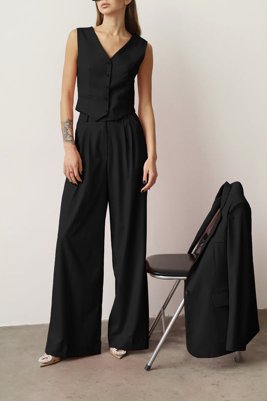 Black Palazzo Pants – Women’s High-Rise Wide-Leg Suit Trousers